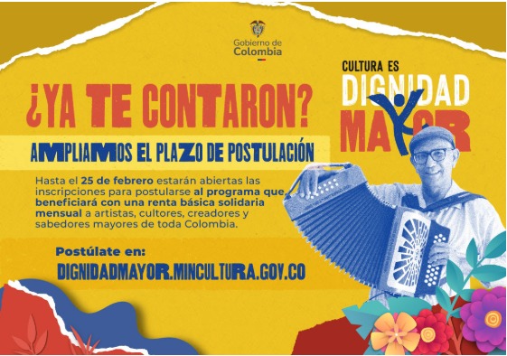 Los artistas y gestores culturales mayores pueden postularse al programa nacional de subsidios del gobierno nacional. Asesoría en Secretaría de Cultura – Centro Cultural Comuna 4