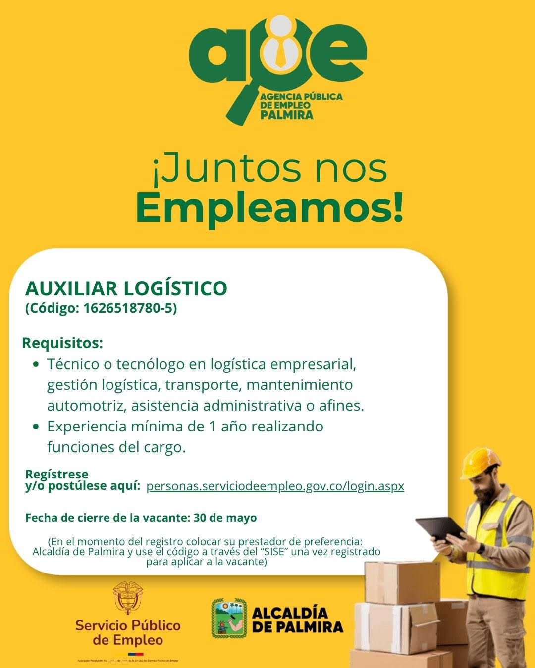 ¡Nuevas oportunidades para ti! AUXILIAR LOGÍSTICO Por eso, desde la Agencia Pública de Empleo de la Alcaldía de Palmira traemos ofertas de empleo, pensadas para ayudarte a dar el siguiente […]