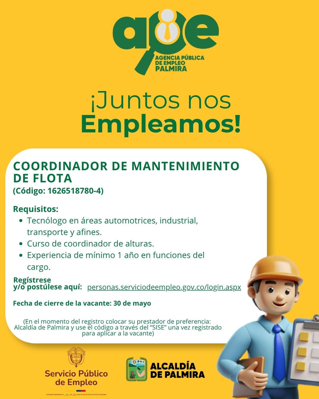 ¡Nuevas oportunidades para ti! COORDINADOR DE MANTENIMIENTO Por eso, desde la Agencia Pública de Empleo de la Alcaldía de Palmira traemos ofertas de empleo, pensadas para ayudarte a dar el […]