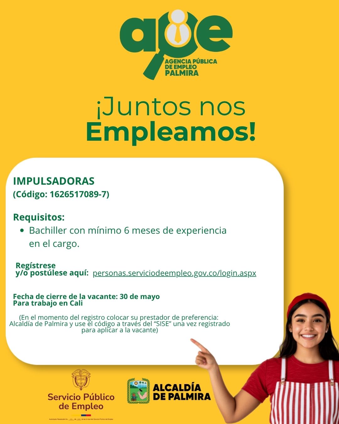 ¡Nuevas oportunidades para ti! IMPULSADORAS - 7 Para trabajar en la ciudad de Cali Por eso, desde la Agencia Pública de Empleo de la Alcaldía de Palmira traemos ofertas de […]