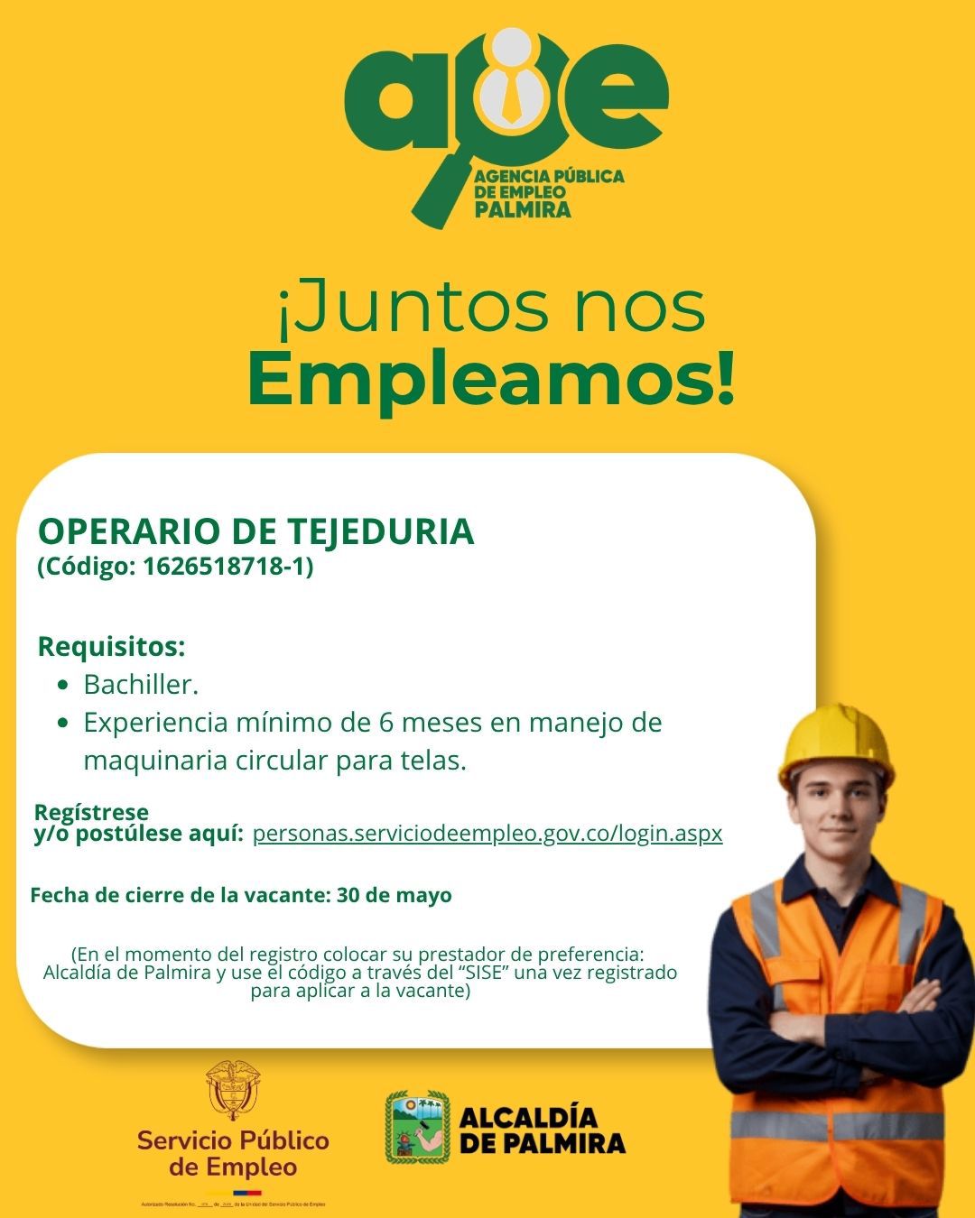 ¡Nuevas oportunidades para ti! OPERARIO TEJEDURÍA Por eso, desde la Agencia Pública de Empleo de la Alcaldía de Palmira traemos ofertas de empleo, pensadas para ayudarte a dar el siguiente […]